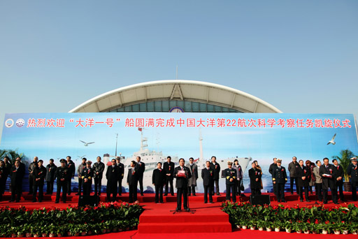 “大洋一号”船第22航次科考任务凯旋仪式现场