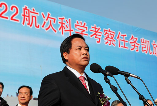 刘赐贵在讲话中高度赞扬了全体科考队员不怕困难、不畏风险、顽强拼搏、开拓创新的精神。他强调,大洋第22航次作为执行大洋“十二五”规划的开局航次,圆满完成了预定目标,为实现大洋战略布局奠定了良好基础,对落实党中央领导批示和国务院对大洋工作的要求做出重要贡献。他指出,2011年恰逢大洋协会成立20周年。20年来,我国持续开展深海资源调查,大力发展深海技术,积极促进深海战略新兴产业发展,取得了辉煌的成绩。但也要看到,与世界发达国家相比,我国大洋工作还有差距,需要我们保持清醒的头脑,加倍工作,奋起直追,努力实现大洋事业跨越式发展。