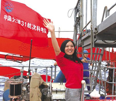 “向阳红09”船9月7日电7日,来自中国国家海洋局第二海洋研究所的80后女博士唐立梅与傅文韬、叶聪构成“傅立叶”组合,乘“蛟龙”号完成了在西北太平洋采薇海山西坡的下潜。