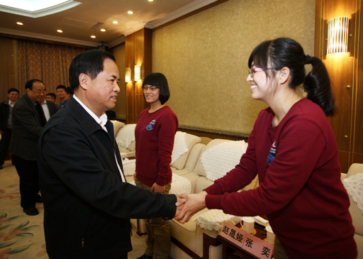 12月9日,国家海洋局党组书记、局长刘赐贵在京接见了刘晓辉、齐海滨、杨一帆、张奕、陈云赛、赵晟娅6名第二批深海载人潜水器潜航员学员,鼓励他们加强学习,做一名优秀的潜航员。