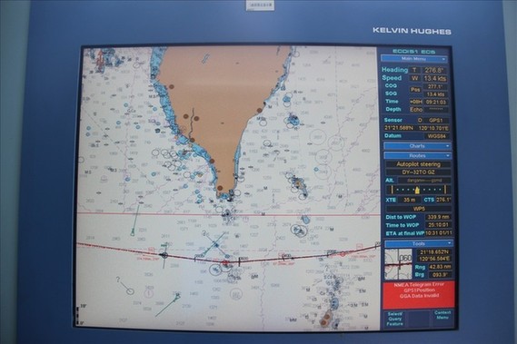 电子海图显示,海洋六号于10月31日凌晨6点过完巴士海峡进入南海