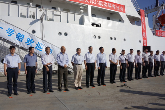 中国网11月16日讯(记者 冯竹)执行我大洋科考第34航次任务的“大洋一号”船今日从三亚起航。国家海洋局副局长、中国大洋协会理事长王飞以及中国大洋协会办公室、国家海洋局第二海洋研究所、国家海洋局北海分局等参航单位的代表为大洋34航次全体科考队员送行。