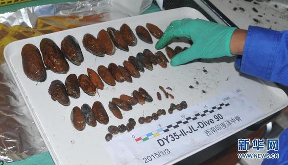这是“蛟龙”号载人潜水器在海底热液区采集到的贻贝等生物样品(1月3日摄)。