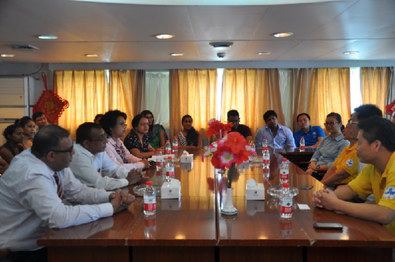 “大洋一号”今天迎来了毛里求斯大学的师生,这是他们首次登上大洋科考船。“大洋一号”首席科学家陶春辉介绍了中国海洋科考取得的成就与进展。在参观实验室时,研究海洋生物多样性的Louis yohan Didier博士表示,看到“大洋一号”采集的海底生物样品太让人激动了。海洋学院的老师Nadeem Nazwrally曾到青岛参加国际会议,“那时就听说了“海洋一号”,没想到现在见到真实的船,而且就在路易港。”毛里求斯海洋资源丰富,但海洋科研与海洋经济发展刚刚起步,期待与中国开展更多合作。