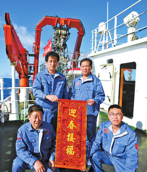据新华网消息日前,正在印度洋执行科考任务的蛟龙号科考队全体队员在海上度过了一个愉快的春节,科考队员通过举办“海上春晚”、包饺子等活动喜迎羊年新春。