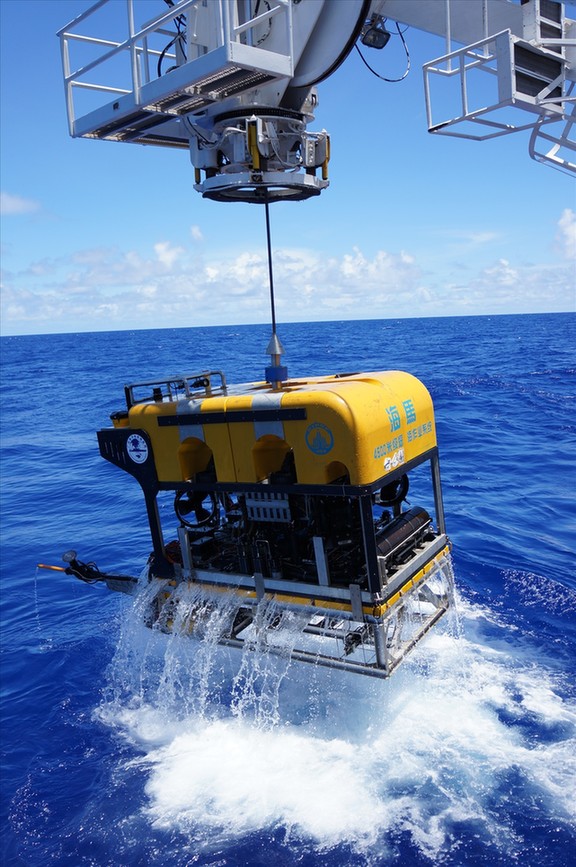 当地时间6月15日早上9时,我国首台自主研制的“海马”号4500米级深海遥控潜水器 (ROV)在我国富钴结壳合同区(采薇平顶山)首次成功下潜作业,深度1755米。本次下潜通过安装在“海马”号上的高清摄像头,观察到该测站广泛发育砾状和板状结壳,通过海马号携带的LADCP获取了物理海洋数据,进行了海底海水采样,还进行了结壳钻取和结壳切割试验。获取了该测站海底高清视频和高质量的环境参量数据。通过本次作业直观地了解了该区域的结壳资源分布情况,基本查明了海山山顶平台的富钴结壳和沉积物局部分布特征。