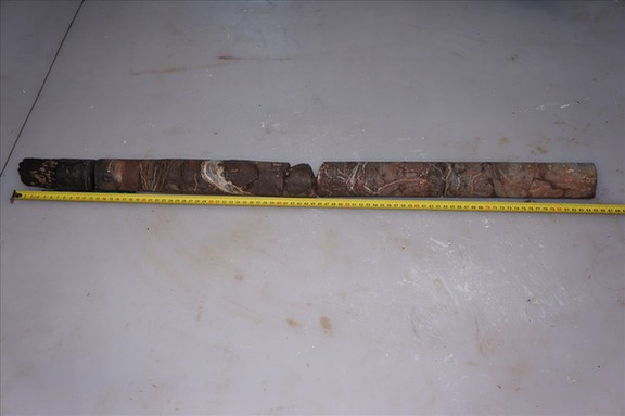 当地时间6月23日下午2时30分,搭载在海洋六号母船上的浅钻在采薇平顶山成功钻取了总长85厘米的浅钻样品,包括10厘米的富钴结壳,和75厘米的玄武质基岩。据船上的样品管理员任江波介绍,截至目前为止,这是本航次第一次钻取到的最长的玄武质基岩样品,该样品主要成分为隐晶质镁铁质组分,表层有红褐色铁质氧化物,样品中间发育有白色碳酸岩脉体,质地坚硬。柱状样品底部玄武岩为灰黑色,相对新鲜,能够进行精确定年,这对于采薇海山形成时代研究具有重要价值。另外,对于海山形成过程以及深部物源组分提供研究素材。(特派记者 杨 旋)