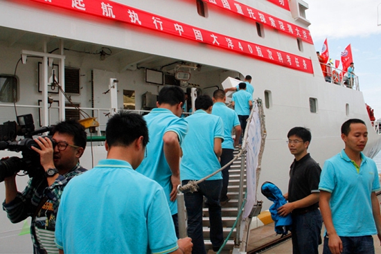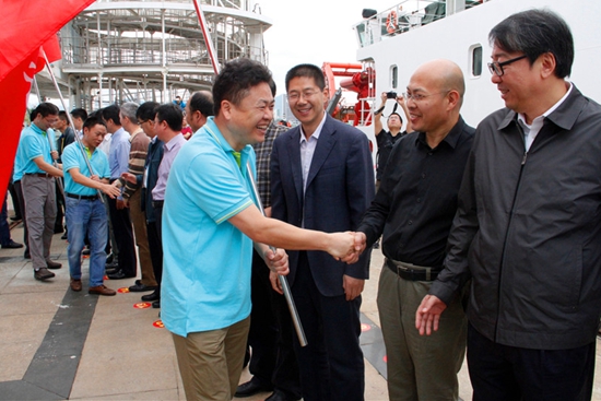 12月16日,由国家海洋局第二海洋研究所(以下简称“海洋二所”)与浙江太和航运有限公司合建的“向阳红10”科考船,从三亚出发执行我国大洋科考第40航次任务。国家海洋局副局长、中国大洋协会理事长王飞,三亚市副市长李劲松,海洋二所所长、中国工程院院士李家彪,中国大洋协会办公室主任刘峰、副主任李波等为赶赴本航次西南印度洋段的全体科考队员送行。