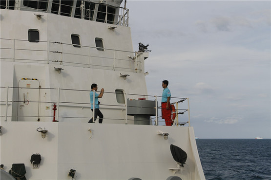 年纪较轻的科考队员们都贴在宿舍的窗户边,希望收到些许信号,性子急的干脆跑到前甲板上,边搜索信号,边与其他人交流。来自海洋三所的微生物权威专家邵宗泽老师也凑进年轻人的队伍里,急切地问道“你收到了哪个通信公司的信号?”获得答案后又走到一边,开始研究起手机信号的问题。几番交流,还是没有“搞定”手机信号,一脸沮丧地问记者,“我的手机到底是怎么回事呢?”