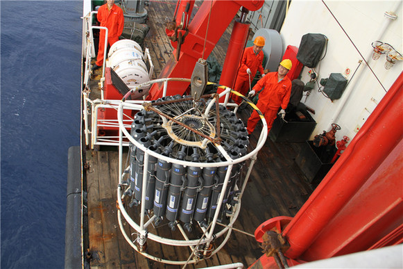 实验室主任、甲板保障组组长吴学文告诉记者,除了这四个CTD自带的传感器,本次下放还携带了氧化还原电位传感器、酸碱度传感器、甲烷探测仪、浊度探测仪等,均是为了准备热液探测,此外,获得的数据可以更好地为明天的布阵做准备。各个传感器之间相互独立又密不可分,综合作用获得的探测数据即将被共享,以便调研队员随时分析。