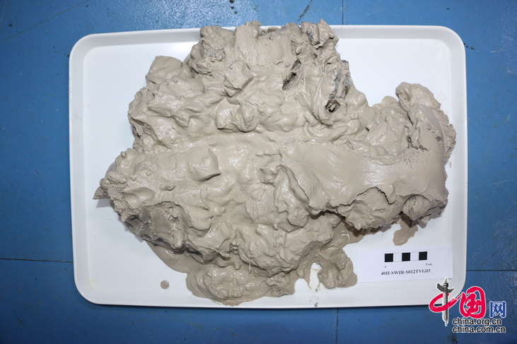经过了一番修整,凌晨两点半,电视抓斗再次入水。此次抓斗作业也非常顺利,19日凌晨4点40分,抓斗到达海底,40分钟后,抓斗成功抓取了海底沉积物。早上6点30分,抓斗顺利出水。“这次电视抓斗作业,采集的样品非常丰富。”廖时理说,“石头虽小,但从外观看,是有热液蚀变迹象的玄武岩,并且有石英脉穿插,可以看出,它的蚀变种类丰富。另外,砂土是一种有孔虫砂,这应该是比较有科研价值的。”