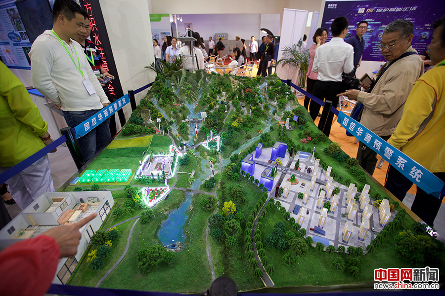 2016年5月19日,北京,洪水预警系统沙盘亮相科博会。当日,第十九届中国北京国际科技产业博览会会展部分在中国国际展览中心正式开幕。中国网记者吴闻达 摄