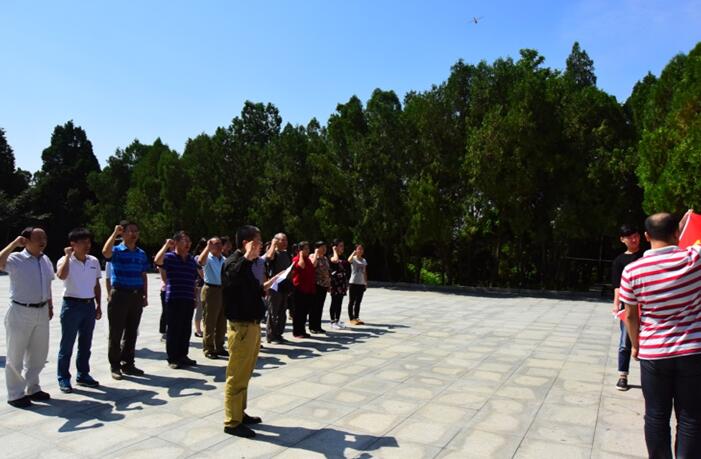 在塔山革命烈士纪念碑前,党员们首先列队向埋葬着的700多名烈士三鞠躬,表达了对英烈们崇高敬意和缅怀之情;然后面对党旗举起右拳,集体重温了入党誓词,进一步巩固升华了热爱党和人民的真挚情感。
