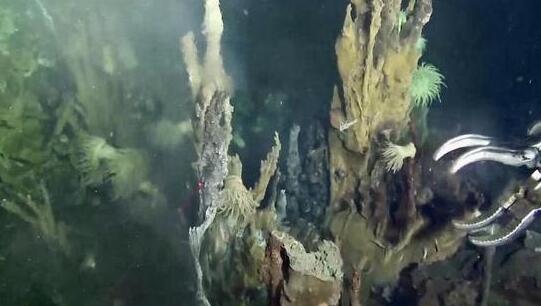 据本航段首席科学家韩喜球介绍,与卧蚕1号热液区相比,大糦热液区烟囱体较大。硫化物堆积体规模较大,高度可达数十米。同时,该区域生物优势种以盲虾和海葵为主,见到少量螃蟹、茗荷、多毛类。