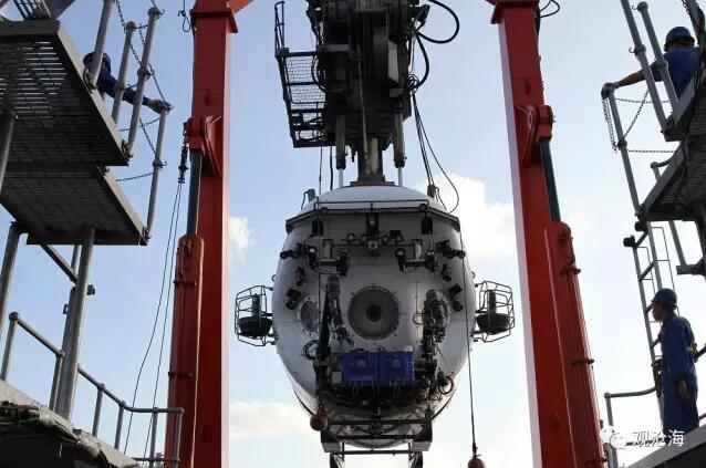 轨道车将蛟龙号推出,运送至A型架下方,主吊缆下放,起吊蛟龙号,A型架向着海面伸展铁臂,护送“蛟龙”入水,随后声学电缆绞车启动,完成声学吊阵布放。整个过程涉及十几个岗位,要想做到潜水器起吊落架衔接有序、动作平稳,绝非一日之功。