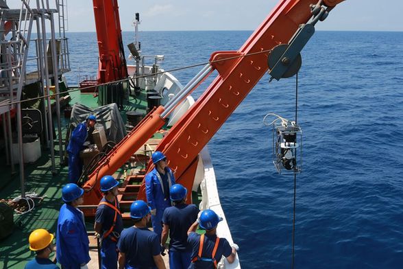 4月25日,“向阳红09”船抵达南海海域第一个海洋调查作业站位,开始了2017年蛟龙号试验性应用航次(中国大洋第38航次)第二航段首个作业站位的调查取样。