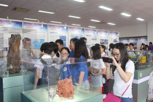 博士团学生们参观了中国大洋样品馆科普展厅,国家海洋局第一海洋研究所副书记孙永福向学生们一一介绍了展品知识。来自太平洋、大西洋和印度洋的富钴结壳、热液硫化物、多金属结核,以及海底岩石、沉积物等,是地球演化与环境变迁的见证者。博士团学生们纷纷驻足观赏,拍照留念。中国大洋样品馆安排多名工作人员参与活动,对博士团成员提出的每个问题都详细解答,并就相关问题进行了互动和交流。希望推动博士团成员进一步了解深海资源探测,鼓励他们积极投身海洋强国建设。博士团学生们也纷纷表示能实地触摸我国大洋科考样品感到非常自豪,与专家的一对一交流受益匪浅,本次参观对深海大洋探测工作有了更全面、更系统的认识。