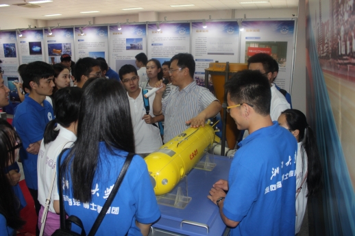 国家海洋局第一海洋研究所的孙永福讲解展品
