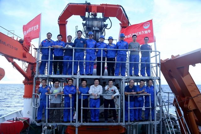 “蛟龙”号完成中国大洋38航次最后一潜,技术保障团队合影庆祝