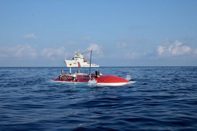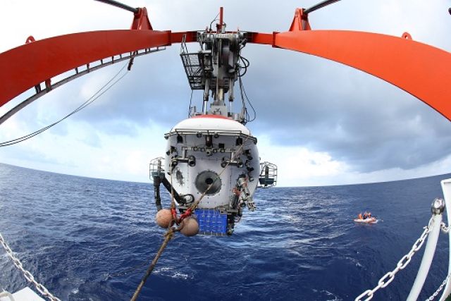 “蛟龙”号离开“向阳红09”科学考察船即将抵达海面
