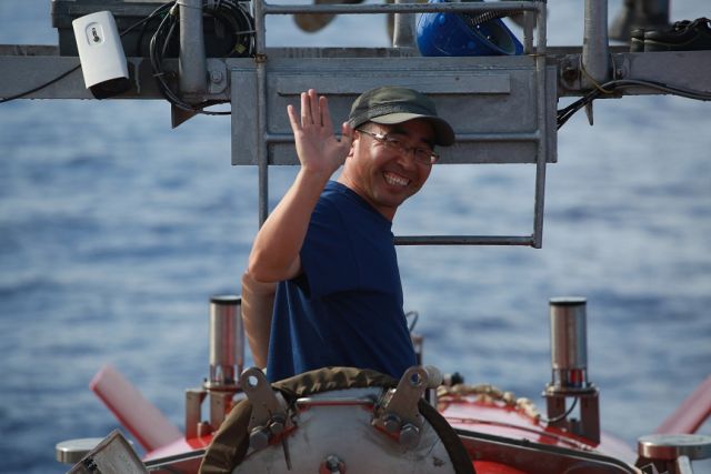 新华社记者刘诗平搭乘“蛟龙”号完成在世界最深处下潜 郭松峤摄(新华社)