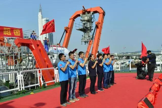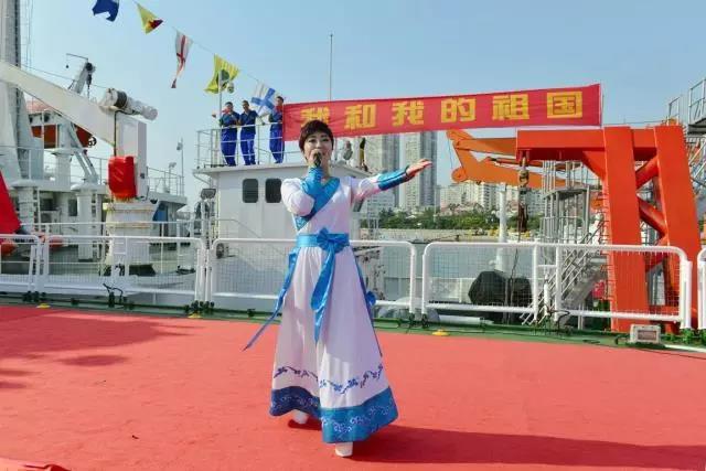 我国载人深潜潜航员唐嘉陵、傅文韬、陈云赛、刘晓辉、齐海滨、杨一帆、张奕、赵晟娅现场演唱了《壮志在我胸》,激情高亢的潜航员们向场内观众展现了我国深潜勇士的精神风貌。北海分局一线职工的代表们,也深情演唱了《我爱你中国》,向祖国献上真挚的祝福。