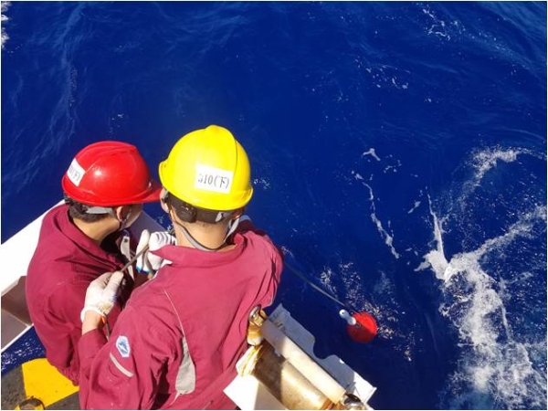这四个小伙子,来自海洋二所船舶调查处海洋科学调查中心,属于“向阳红10”船舶保障组,自“向阳红10”船建造那天起便蕴育而生,他们负责每个航次中的船载调查设备的保障维护工作,包括作业中万米光电缆绞车、同轴缆绞车、地质缆绞车与CTD绞车,以及船载多波束、浅剖、ADCP等声学设备的正常运行,是“向阳红10”船上最为特殊的一群人。在整个大洋49航次第一航段,除了进行常规的设备运行与保养工作,他们还在最短的时间内解决了临时突发的CTD绞车排缆故障、CTD采水器故障、尾部大A架油缸故障、深水多波束系统软件故障、海事五代星互联网通讯故障,有效地保障了航次作业的顺利展开,“向阳红10”船载调查设备的每一条管路、每一处电路,都留下了他们辛勤与智慧的汗水。不仅如此,还负责了第一航段气象浮标与测波浮标的布放,这是大洋业务化航次的首个站位作业。