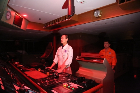 年轻的三副和水手都出生于1990年,同龄人搭配,十分默契。他们向记者耐心细致地介绍着驾驶台上的各种航海仪器:动力定位、电子海图、雷达、减摇水舱……