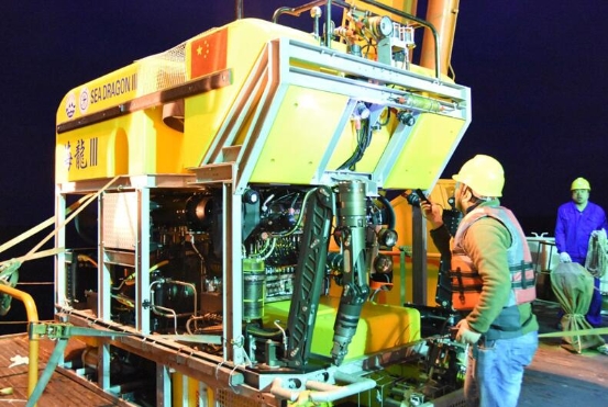 当日,中国“海龙Ⅲ”潜水器由“大洋一号”科考船搭载,在西太平洋海域完成首次深水试验,抵达1690米深的海底。