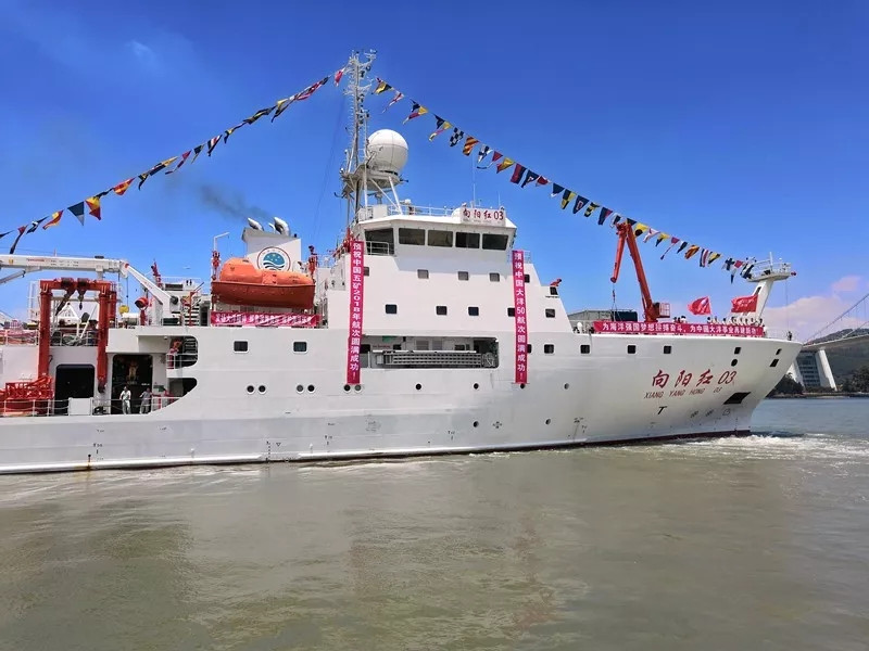 7月14日,承担中国大洋50航次科考任务的“向阳红03”船从厦门出发,将先后前往西太平洋、东太平洋等区域开展为期约150天的大洋科学考察任务,航程约15000海里,预计2018年12月完成任务返回厦门。