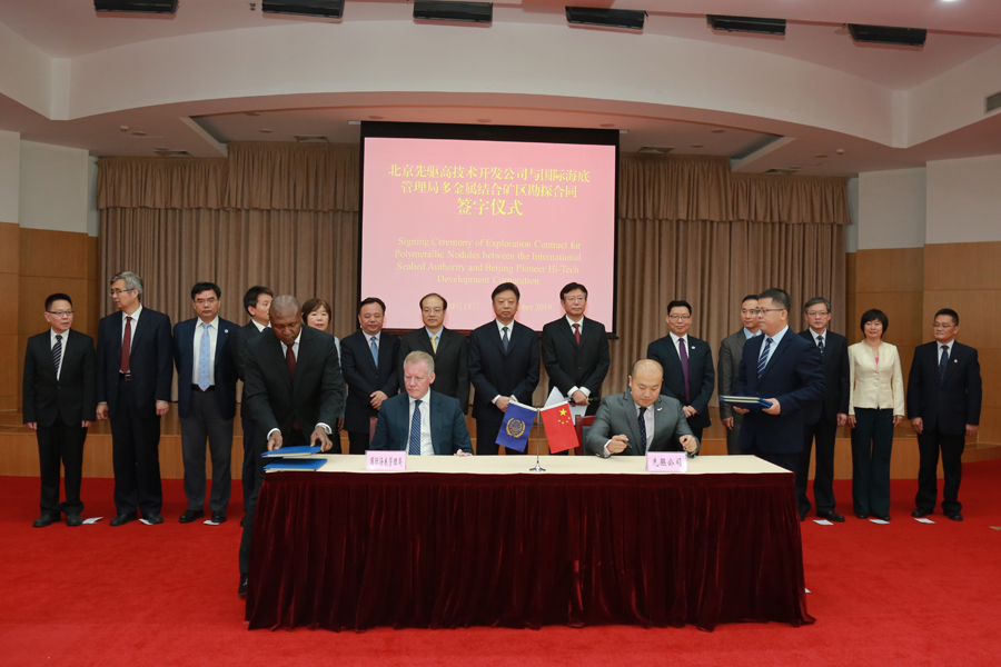 随后,北京先驱高技术开发公司与国际海底管理局签订了多金属结核勘探合同。北京先驱高技术开发公司法人代表陈泽龙和迈克·洛奇代表双方签约。
