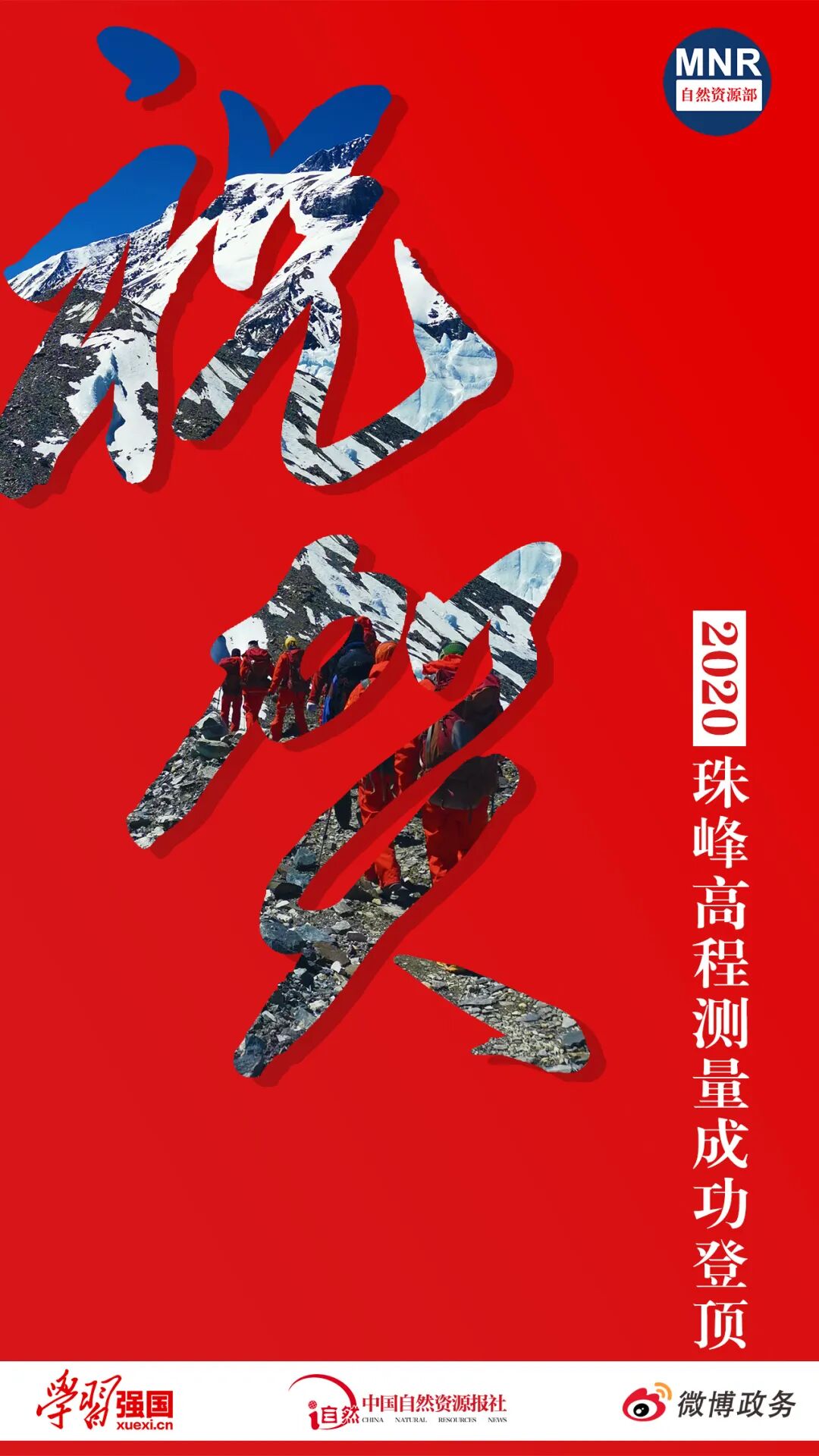 5月27日11时,2020珠峰高程测量登山队8名攻顶队员次落、袁复栋、李富庆、普布顿珠、次仁多吉、次仁平措、次仁罗布、洛桑顿珠克服重重困难,成功从北坡登上珠穆朗玛峰峰顶,完成峰顶测量任务。