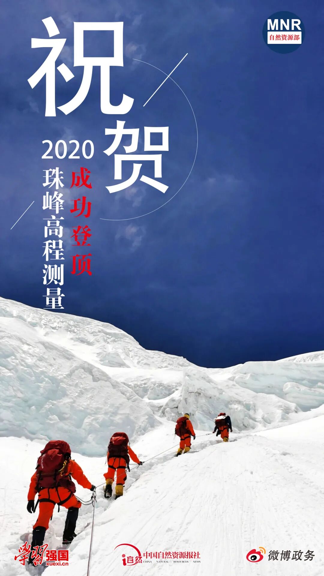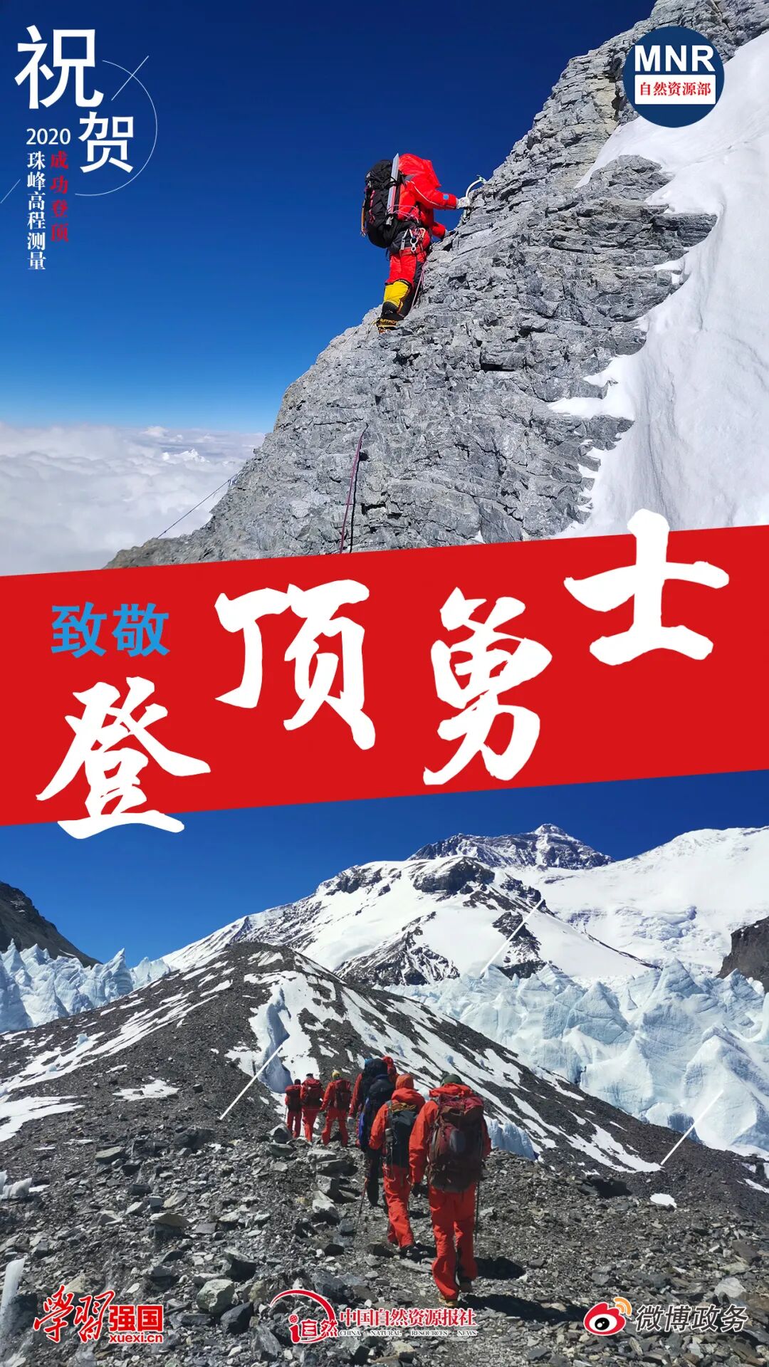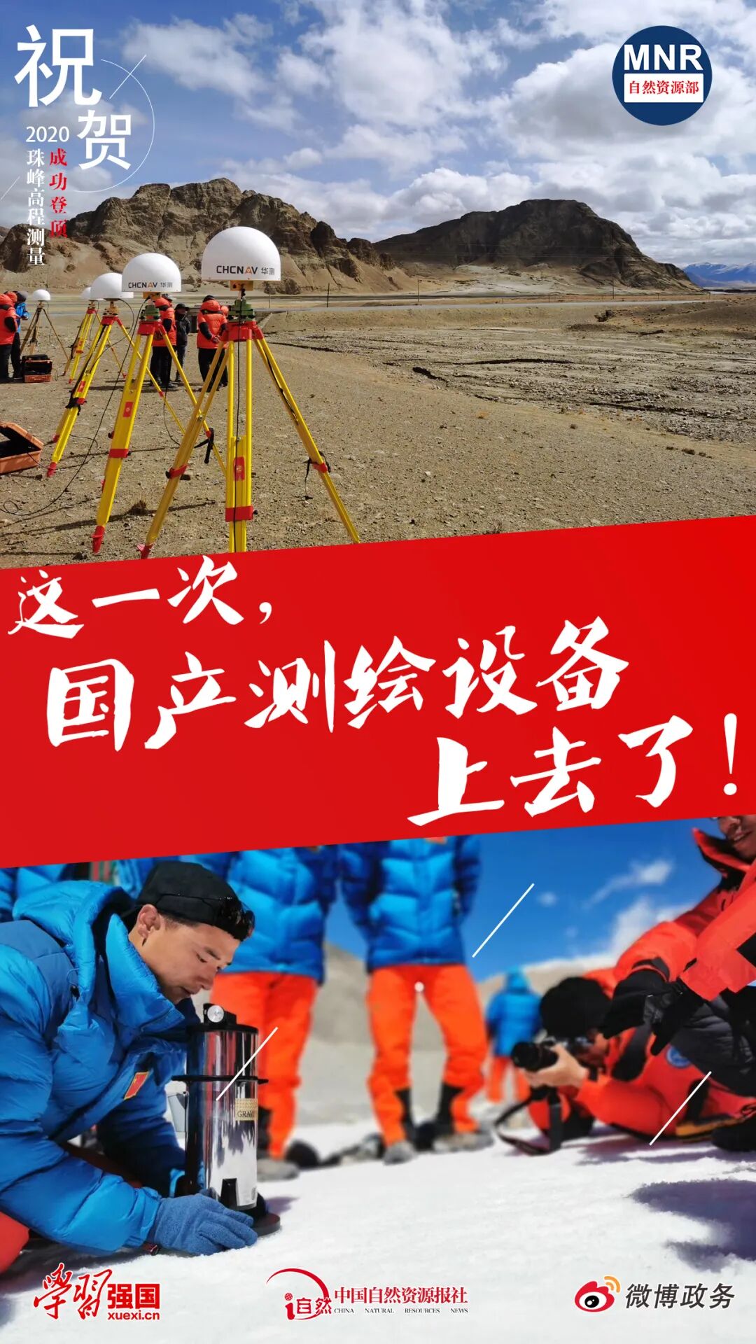 据了解,2020珠峰高程测量实施以来,自然资源部第一大地测量队在珠峰及周边地区开展了水准测量、绝对重力测量、重力加密测量、GNSS测量和天文测量等工作,自然资源部中国地质调查局航空物探遥感中心还开展了航空重力测量。登顶测量和交会测量的成功完成,为本次珠峰测量任务的外业测量工作画下了圆满的句号。峰顶测量完成后,将对观测数据进行联合处理,才能获得珠峰高程最终数据。