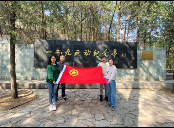 为持续深入推进党史学习教育,2022年4月8日下午,大洋办第一党支部全体党员赴北京植物园“一二·九”运动纪念亭开展爱国主义教育主题党日活动,缅怀先烈,重温入党誓词。大洋办青年理论学习小组成员也参加了此次党日活动,共同接受爱国主义教育。